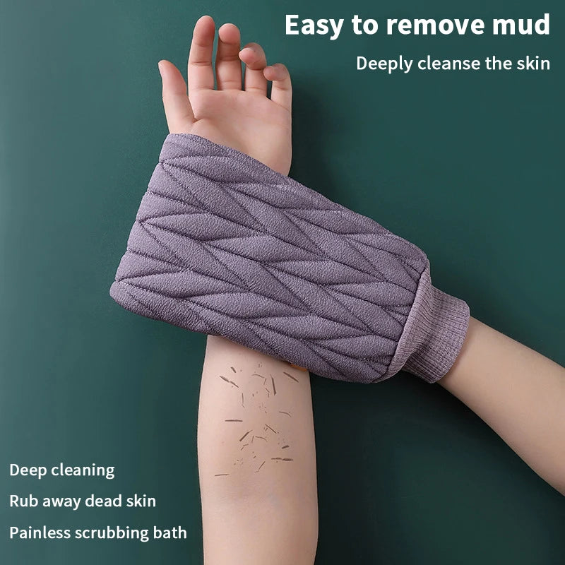 Answer 2: The scrubber features a textured surface designed for deep cleansing and exfoliation, which helps remove dead skin cells and unclogs pores. It also promotes circulation for healthier skin, making your bathing experience both invigorating and rejuvenating.